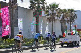 自転車が走行不能となった場合のみ、回収車の手配をいたします。大会本部まで速やかにご連絡をください。なお、コースアウトとなった場合、疲れたと訴える方、回収車の手配をいたしませんので、ご了承をください。